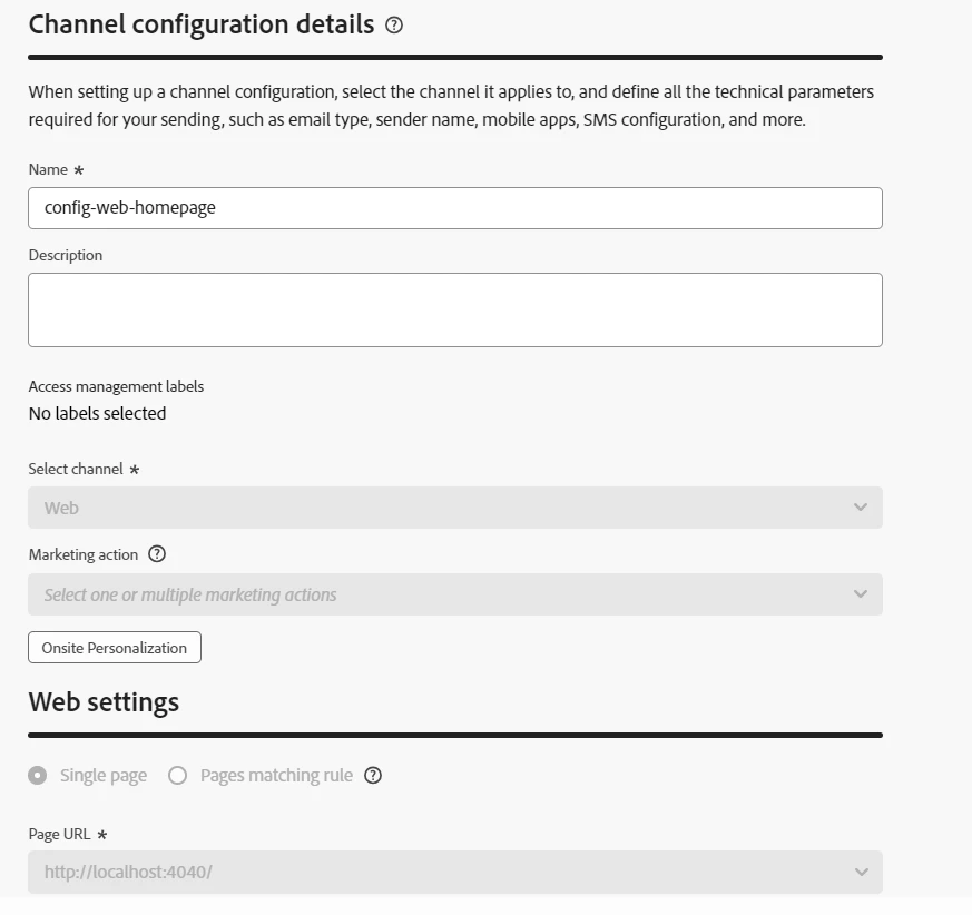 Web channal config: