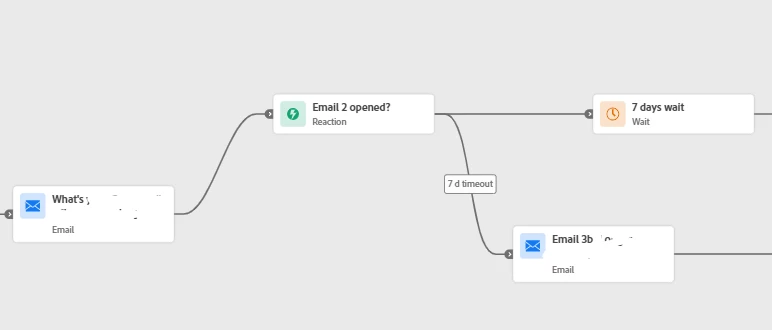 Hi I'm trying to create a custom wait which should wait 7 days after the person received the "What's" email and not wait 7 days after the Open reaction.