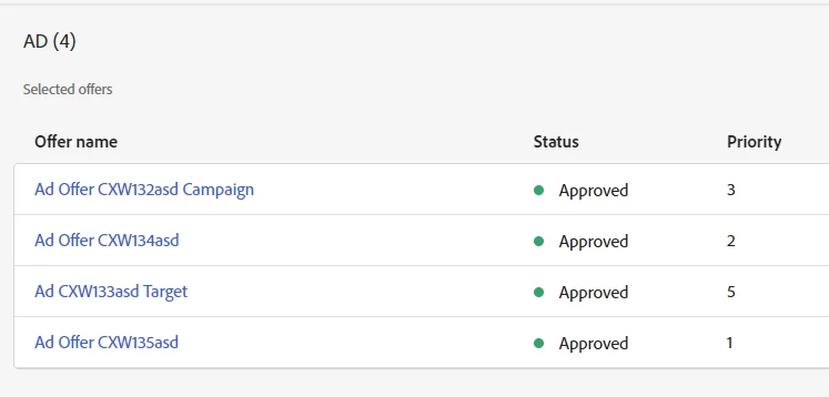Hi, I've created 4 Web offers with different priorities: