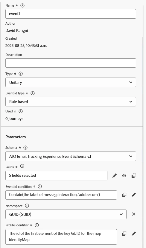 using this formule "The label of the collection timeSeriesEvents at position 0 is equal to 'Voglio essere ricontattato'"