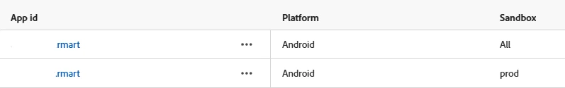 Hi, I have different credentials for the dev and prod environments. Both push credentials use the same appID, but the dev credentials were configured with the “Apply to all sandboxes” option enabled, which is why they show as “All” in the sandbox field.