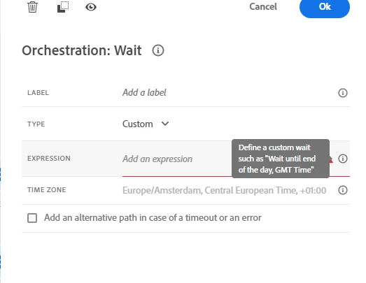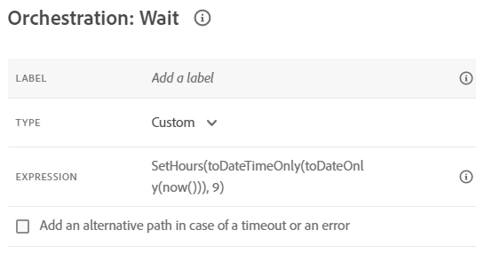 Set a custome wait time - wait till next morning 09am - with advanced expression | Adobe Higher Education