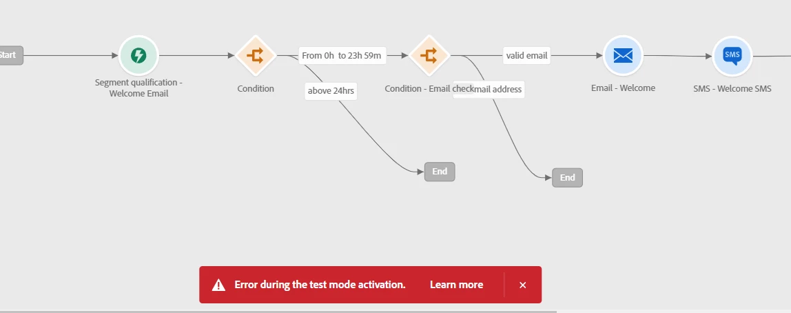 When I am trying to add a tracking URL in my SMS content and switch the journey to Test Mode I am getting below error.