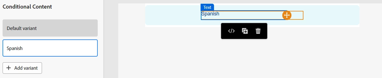 I am working to create a visual fragment to use in email templates that has conditional content to show English or Spanish text depending on the profile's language preference. It seemed easy enough after creating a condition for Spanish and having the default be for English.