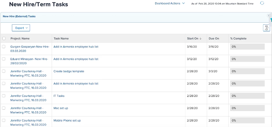 All of this is tracked in Workfront and because of that, reporting on new hire and departing employee progress simple and easy.