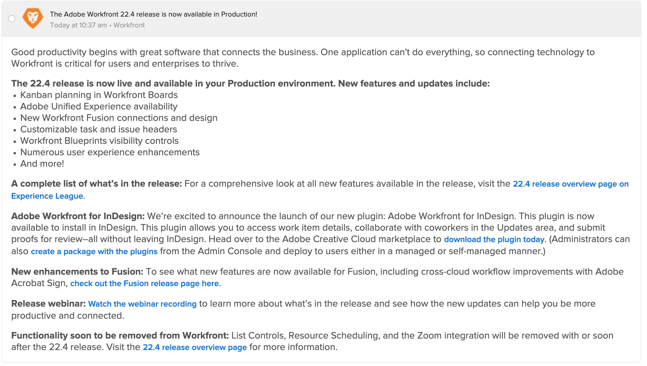 For specific release dates and times for each cluster, see the Adobe Workfront status page on status.adobe.com. You must log in to see specific release times.