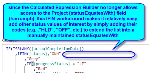 How to Fake "Status Equates With" on a Project level Calculated Parameter