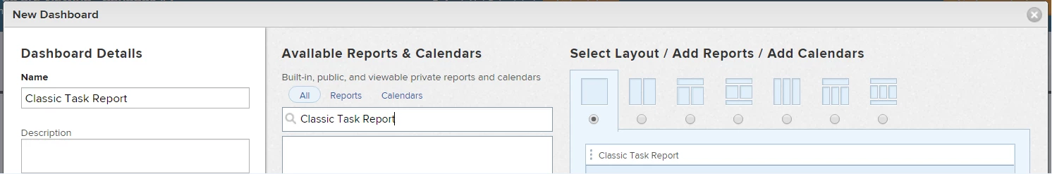 STEP 2: add the Classic Task Report to a Classic Task Report dashboard