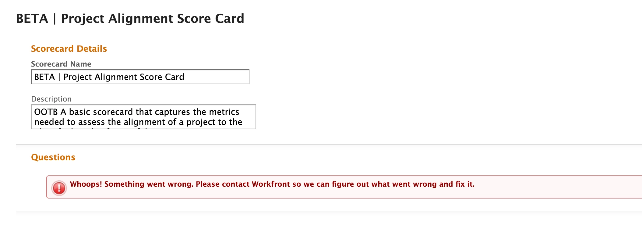 I'm getting this error message when trying to access scorecards. I get the same message on several environments.