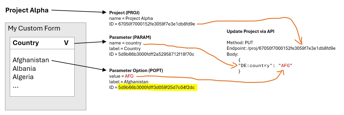 Is it possible somehow to populate the custom field by providing the ID of the desired Parameter option (instead its value) to the API?