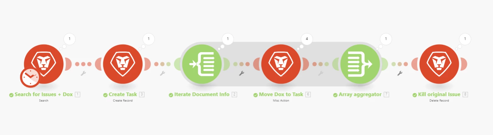 I have a scenario that creates a task from a request (issue) when a custom field is selected. The problem I'm having is how to pass the attached document from the request (issue) to the new task. Does anyone know if this can be done?