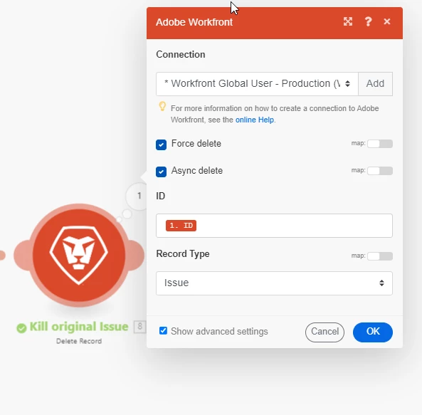 I'm able to see the document ID in the Watch Record module (first image), but it doesn't appear when mapping the data (second image).