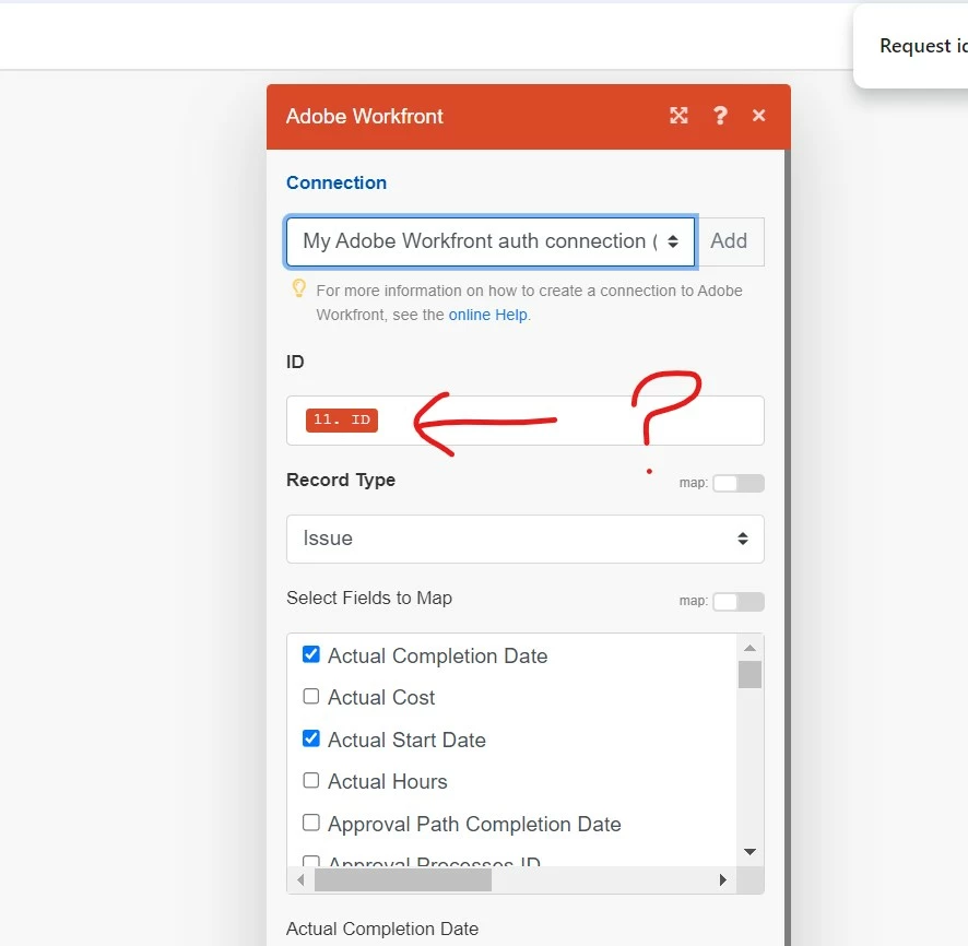 When I do it as shown in the screenshot, I am getting the error "Missing value of required parameter 'ID'."