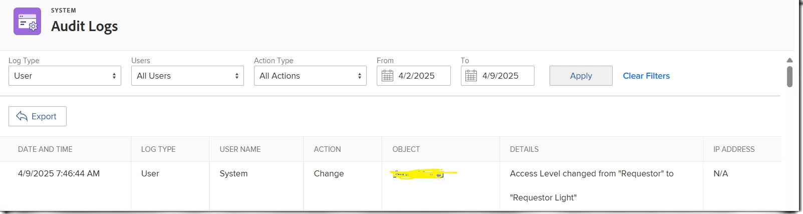 Is there any way to trigger a watch event when user Access Level change automatically. I know we can use Joural Entry but I can't filter by UserName=System.
