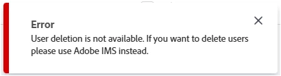 Current Behaviour - I select the Delete option and I get an errror saying delete has been turned off and this is being managed by the IMS. But there is no way in IMS to delete either, just remove user permissions.