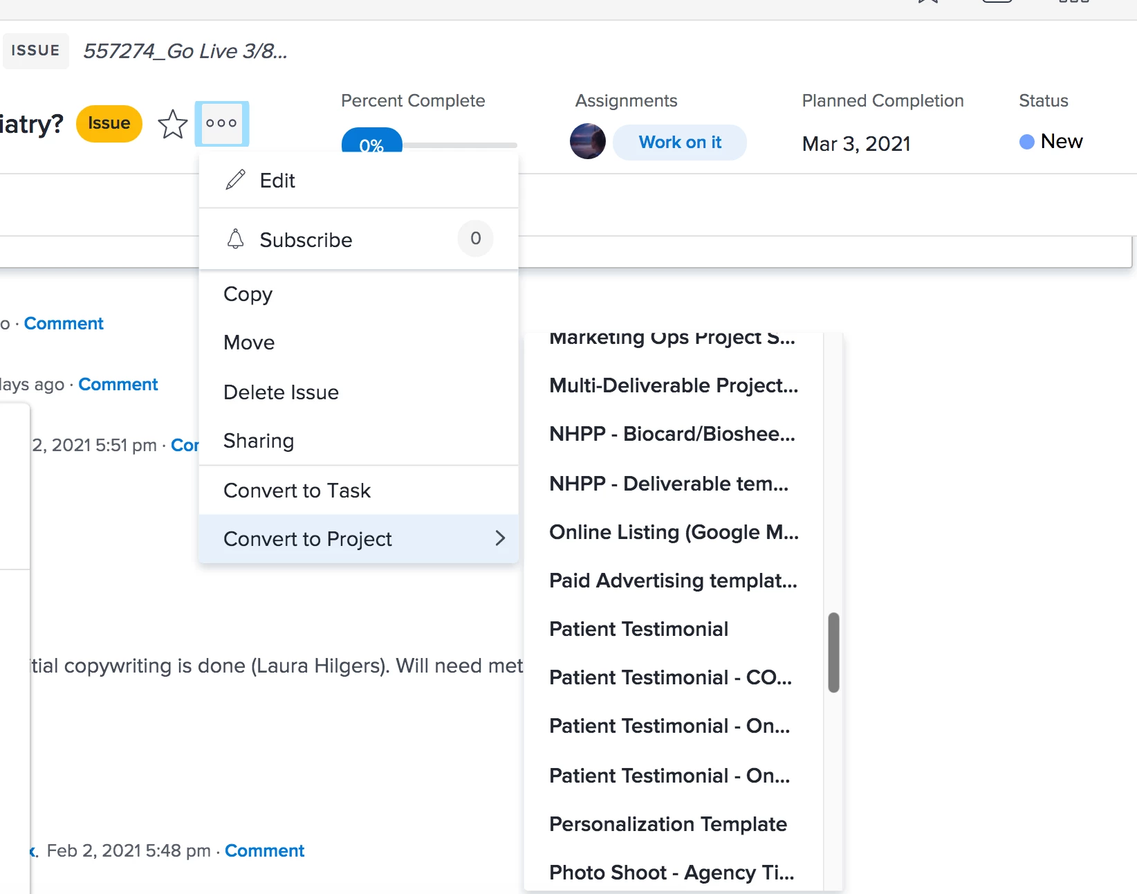 The template names are very limited in characters when you convert an issue to a project and select a predefined template. The display window of the template names should be longer to allow for larger titles.