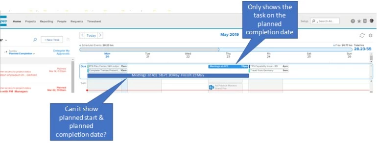 HOME: Show Planned Start and Planned Finish graphically in the calendar view