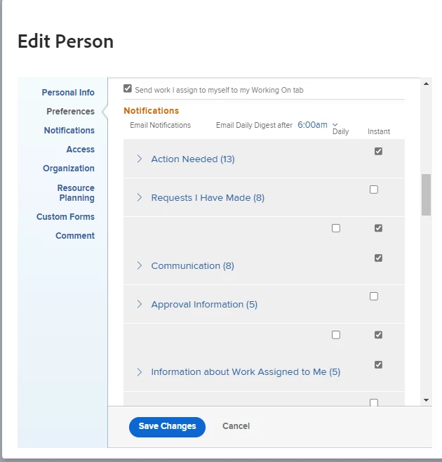 If you’d like less notifications from Workfront follow these (overly busy but required) steps: