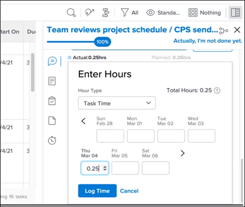 Timesheet in fly-out view