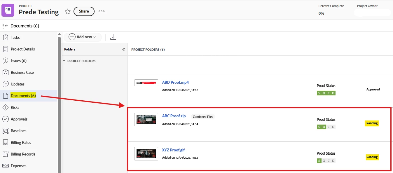 Visibility of Proofs' Stage within the Document section of a Project when pending Approval