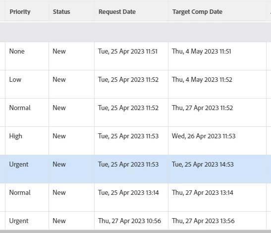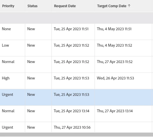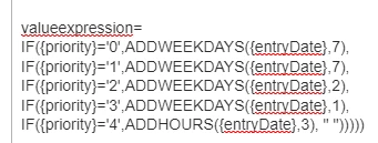Request Date is the entrydate field in workfront. I want to add days to all of the request dates based on the priority field, but where the priority field is "Urgent" I need this to add 3 hours to the request date. Below shows that the "Target Completion Date" is resolving to blank for the urgent requests.