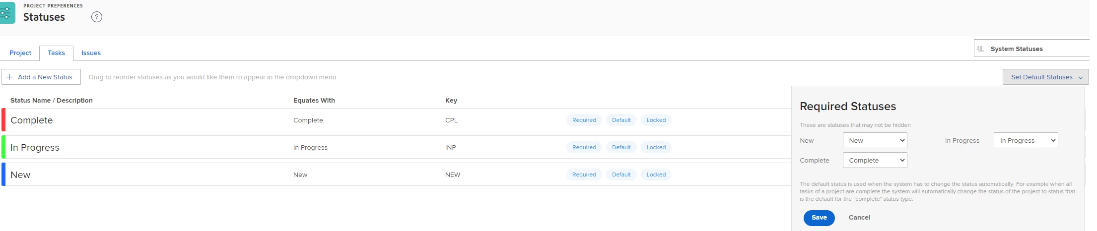 I have looked under settings and I do not have the option to create a "Cancel" task. I can create a task but only have three options "New, In Progress, and Complete".