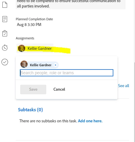 when assigning people to tasks, you can no longer add more than one person at a time because when you hit return once it moves to the next task, it used to let you add the first person, hit return and it adds them, then you find the next person, hit return and it adds the next one and so on without moving to the next task, no longer can we do this, we have up to a dozen people to add to a task, and it makes it really hard to assign quickly. In the recent past, you would hit return twice to move on to the next task, now it is just once unfortunately. Does anyone have a resolve for this?