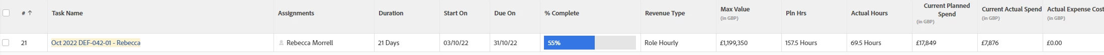 E.g. - if a task has £15,000 planned, but it's 50% of the way through, I'd want the planned revenue to be divided by half. Ergo, it would equal £7500. Therefore, it would be £7500+actual revenue=forecasted revenue.