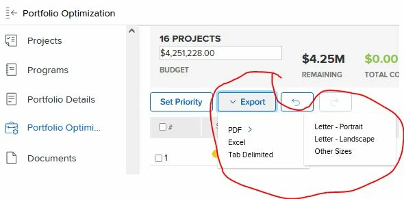 Can you export the Portfolio Optimizer data? Nothing happens when I try to export.