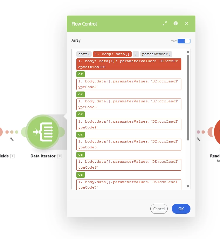 I need to compile field-level data from multiple tasks and add it to a CSV file. The issue I’m facing is that the data is arriving in separate bundles, whereas I need it in a single bundle to correctly position the fields in the CSV, ensuring they appear in the right order and row.