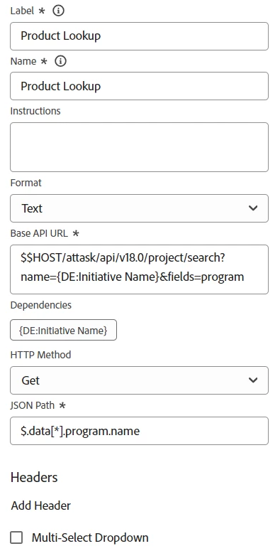 I am trying to fetch the Program associated to a Project. The Project is selected using a typeahead and the name of the Project is used in the URL to fetch the associated Program. The issue is that the External Lookup field is not returning any value when the Project name has special characters. This is what I could deduce from what I could see. Any suggestions or leads are appreciated.