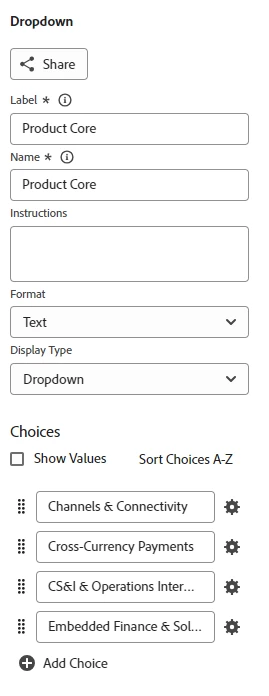 Created initial Product field I needed users to select (notice special characters in titles)
