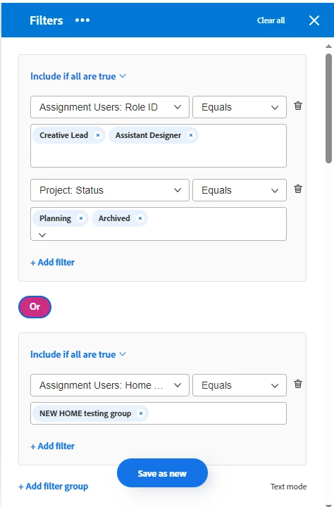 Hi there! Is it possible to create Filters in the Workload Balancer with conditional statements. For example, I would like to add an OR statement in my filter, but currently am unable to do so (I only see "Include if all are true").