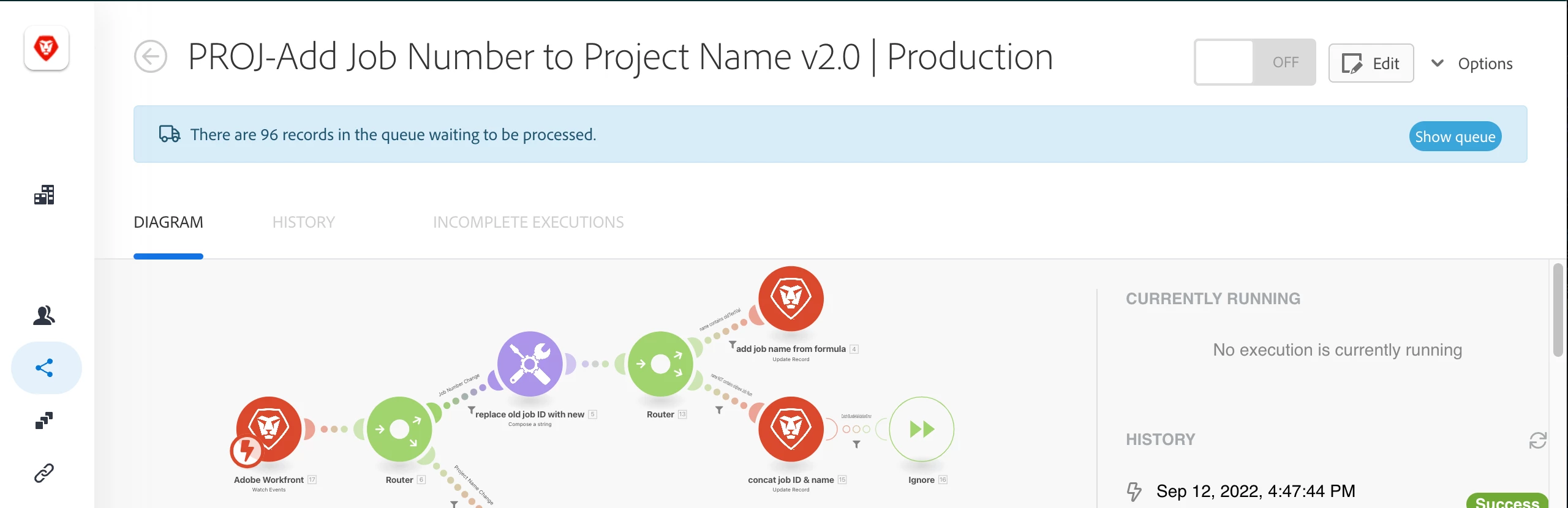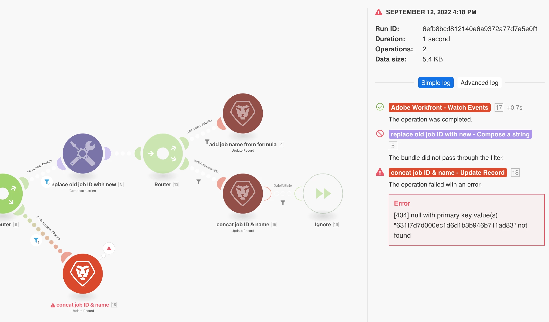Your scenario PROJ-Add Job Number to Project Name v2.0 | Production has encountered an error.