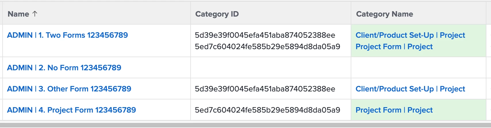 Is the ID of "Project Form | Project" 5ed7c604024fe585b29e5894d8da05a9 as in the Category ID?