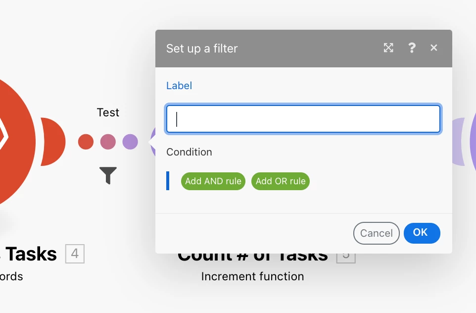Does anyone know how to delete a filter set up between 2 modules in Fusion?