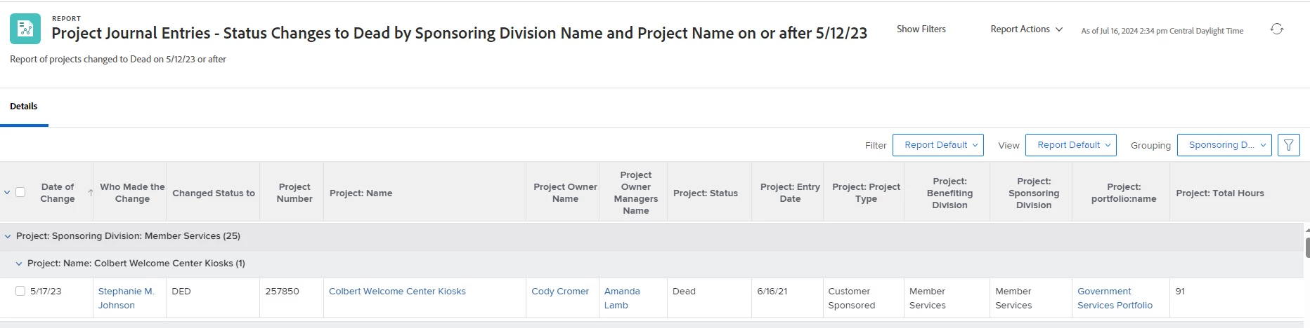 I have a report (journal entry object type) and the report does not have the option to export