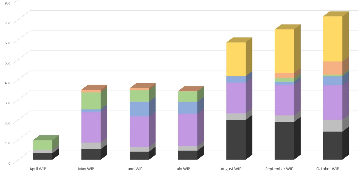 We are talking about a LOT of projects, so listing out the individual projects on a chart-style report is not an option - ideally it would be a bar chart showing work in progress by month. Here's an example: