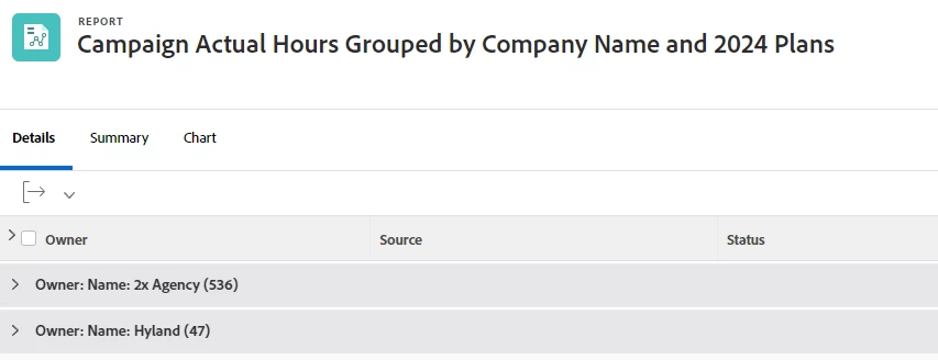 We have built many types of reports. Mainly, projects, tasks and also hours reports. One thing that irks me is that most of the groupings can only be done for the object ID and not the object name. For example, hours report can only be grouped by owner > company ID instead of company name.