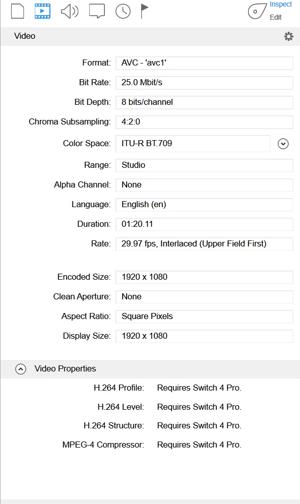 Our post-production editors also output the proofs as high bitrate mp4s, 1920x1080, with stereo mixed audio AAC tracks.