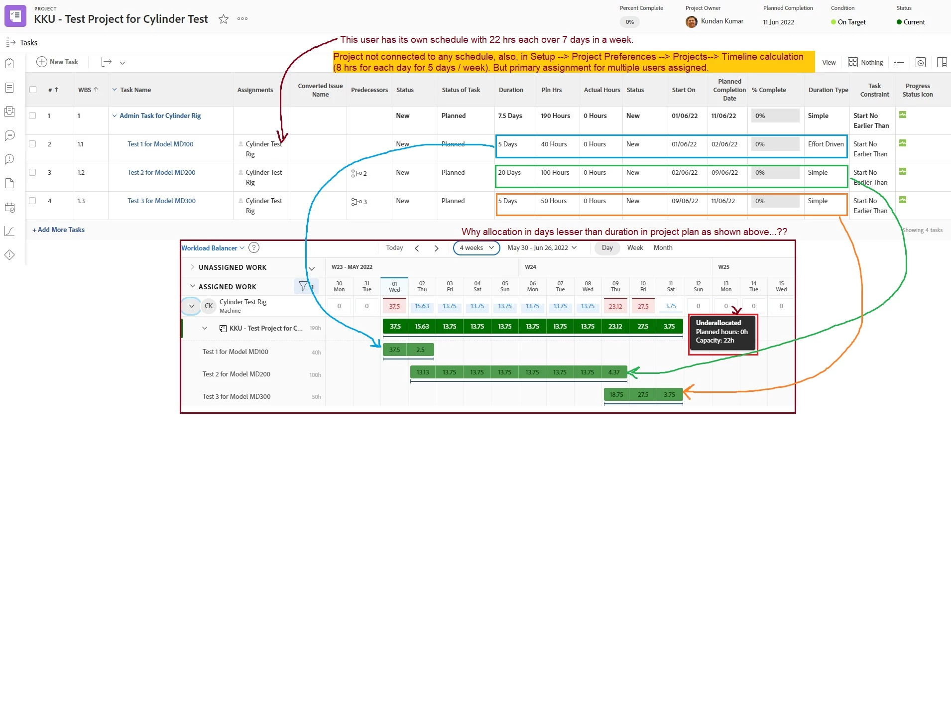 Why allocation in days lesser than duration in project plan as shown above...??